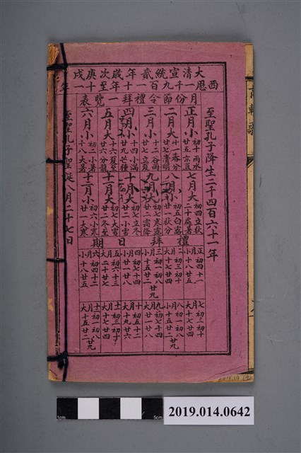 該物件為1909年(宣統元年)石印的線裝歌本「新刊乾隆君遊蘇州段機教子商輅合歌」,原物主為柯天送,由廈門文德堂批發。該書封面印有書價「三分銀」,封底印有1910年(宣統2年)的月份節令禮拜一覽表,並標示出西曆,以及孔子降生之紀年。