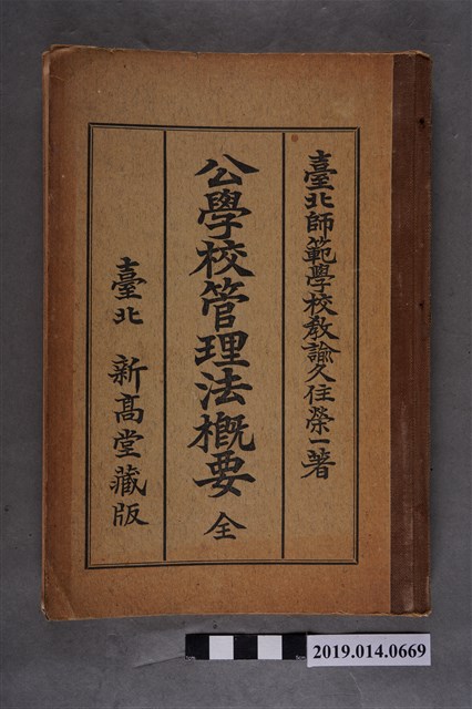 2019.014.0669 久住榮一撰《公學校管理法概要 全》