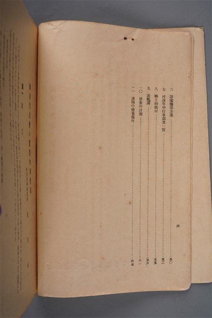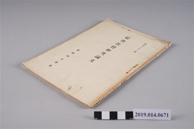 該物件為1931年(昭和6年)3月臺南州共榮會出版的《社會教育研究論文》,收錄〈國語普及會の實際的經營案〉一文。全書共6章,標題分別為:緒言、國語講習會開設に關する諸調查、訓育方面、知育方面、體育方面、雜。