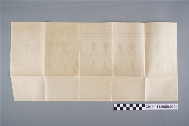 該物件為夾於《國民體操圖解》中的「國民體操圖解第一表」,表中包含準備運動、胃腸強健運動、肺部強健運動,以及各項運動的用意、動作、效果和次數。