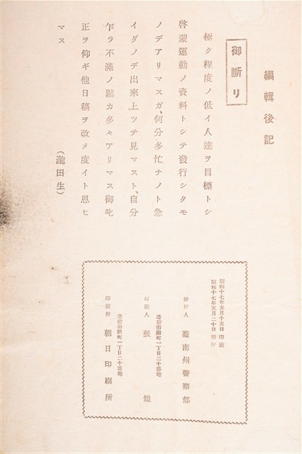 臺南州警察部出版《教養資料特輯號:時局問題解說資料》