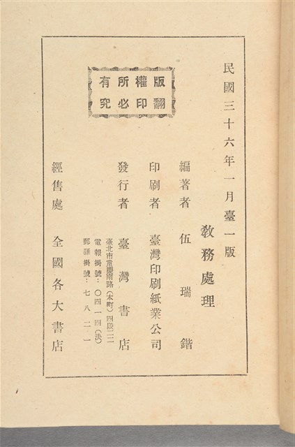 2019.014.0729 伍瑞鍇編《教務處理》