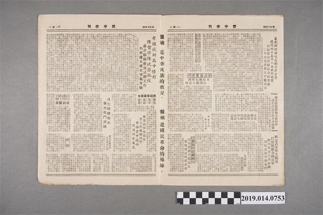 該物件為臺南縣立新豐中學校刊第54期,發行日期為1658年7月1日。該校刊共4版,內容包含課程補充教材(標題為〈紀念「新武昌起義」──漢陽青年學生反共起義一週年〉)、校內新文、優秀學生報導、學生投稿。