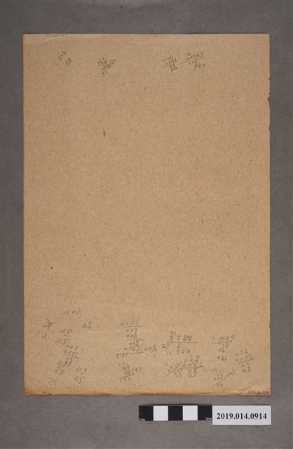 該物件為河村禧元(即捐贈者柯瑞吉)的算術科作答紙,其上僅有10題答題過程,無試題內容和紅筆批改痕跡。背面寫有計算過程。