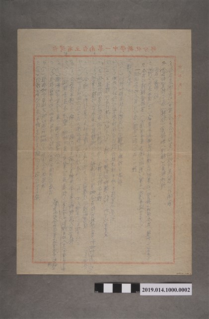 該物件為臺灣省立臺南第一中學新化分部一年級公民科第二次月考試題命題試卷第2頁,由捐贈者柯瑞吉之父柯天送親筆撰寫於臺灣省立臺南第一中學新化分部用箋上。其上的考題題型為選擇題、填充題,試題內容包含國民與公民的概念、中共劣跡、國家的義務、國籍判別、公民權利等。