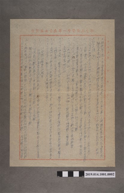 該物件為臺灣省立臺南第一中學新化分部一年級公民科第四次隨堂考試命題試卷第2頁,由捐贈者柯瑞吉之父柯天送親筆撰寫於臺灣省立臺南第一中學新化分部用箋上。其上的考題題型為選擇題、填充題,試題內容包括創制權、罷免權、公民權利、個人基本權利等。