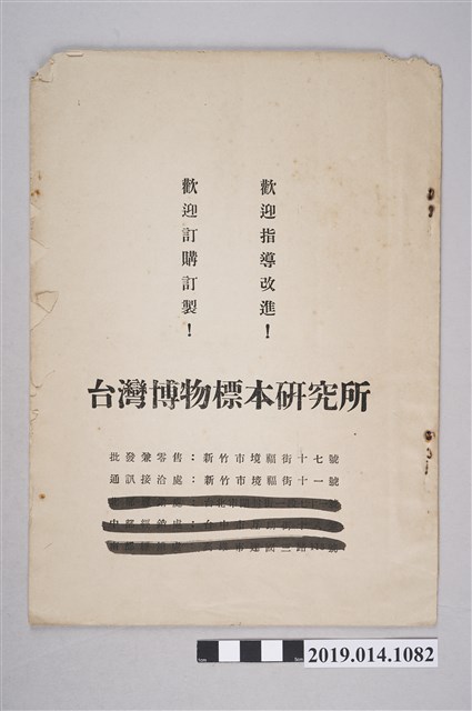 臺灣博物標本研究所、標本、儀器、模型、目錄、訂購單、科學教師計劃表