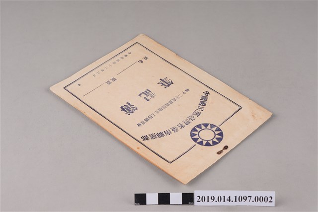 該物件為中國國民黨臺灣省臺南縣黨部四十二年度黨籍總檢查工作講習會筆記簿,其上無任何字跡或畫記。內夾一張寫有日本童謠〈紅蜻蜓〉歌譜的紙。