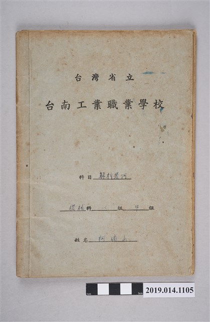 2019.014.1105 柯瑞山臺南工業職業學校幾何解析作業簿