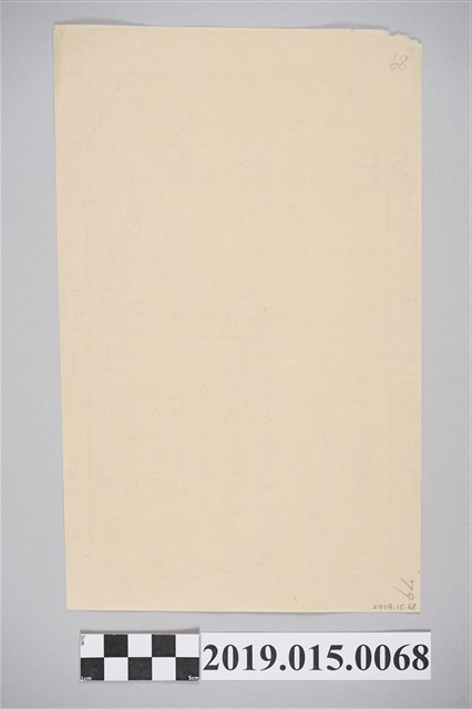 本件屬於木屐蘭洪家文書其中一件,為光緒12年(1886)12月,業戶潘六官菗干坐落在北關保土名大中心的田地,經丈3分2厘8毛9絲6忽,已編入魚鱗冊黃字第1815號。嗣後業戶典賣土地,應將此單隨契繳至庄書處。此契為埔字第4401號。 此件為清朝政府印刷文書,背後已托裱,契面有破損已修補,契上文字仍能清楚辨識解讀。契上蓋印「臺灣府埔里社」、「代理埔里社分府林」共3方。此契為〈光緒21年2月潘六官菗干杜賣盡根田契〉田地的業戶過戶印單執照,此契可了解中部埔里、魚池地區土地買賣的情形,契約具珍稀性。