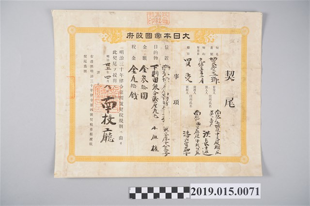 2019.015.0071 明治35年4月洪長遠契尾