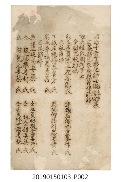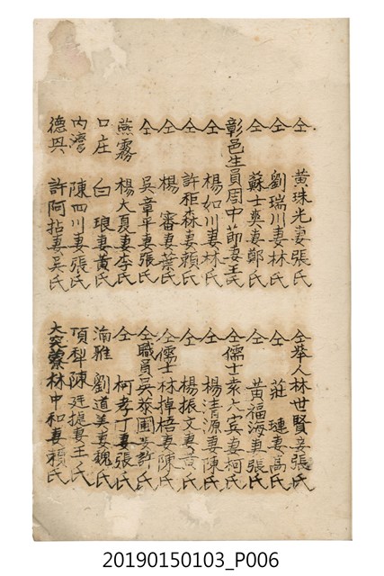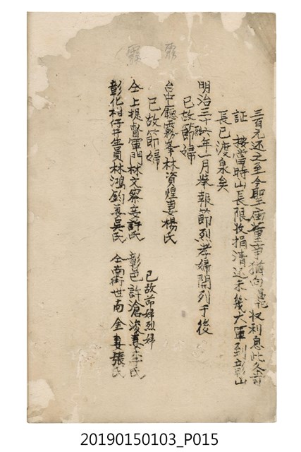 2019.015.0103 同治12年、光緒13年、明治36年節孝名冊