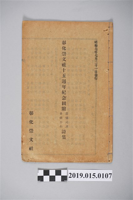 2019.015.0107 彰化崇文社《彰化崇文社十五週年紀念圖附追懷武訓詩集》