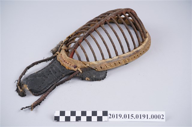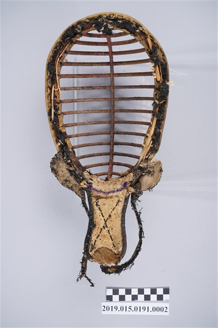 白色恐怖受害者呂清銘先生所使用。本物件為劍道胸部護具及臉部護具。若結合劍道與殖民教育的脈絡來看,劍道於日本殖民時期的教育有極為重要的地位,由於其和弓道皆為日本武道教育的核心。在歷經甲午戰爭和日俄戰爭後的日本,武道為一精神涵養與身體規訓的代名詞,以武德會會中心通過警察系統在全臺各地快速發展。隨後昭和11年武道的概念也進入學校的體育教育當中。學生、警察和地方單位都可見到武道組織的成立。而到了後期進入二戰時,武德會也亦從早期宣揚傳統武德的組織成為戰爭機器下的外擴組織。順著此脈絡我們能夠從這兩項器具思考臺灣地區武道教育和武德精神的傳播,如何連結到殖民者對殖民地居民的想像。在培育一個理想的天皇臣民的思考中,武道教育被以如何的方式呈現,是值得去深思的問題。