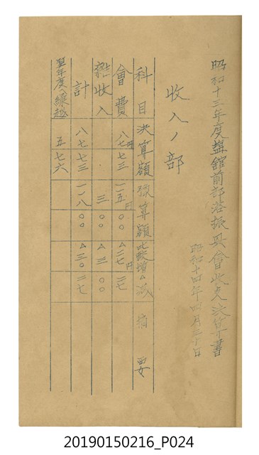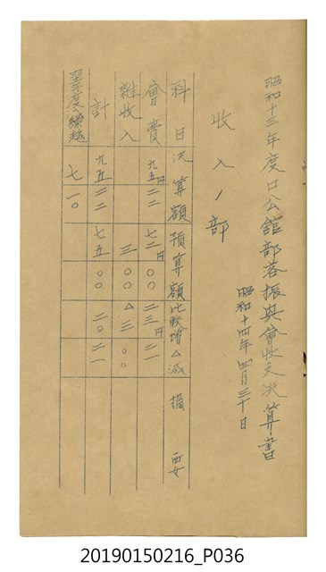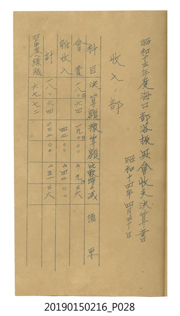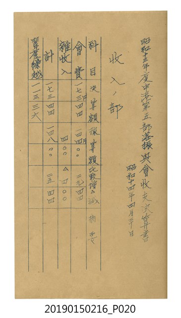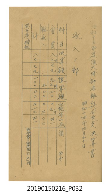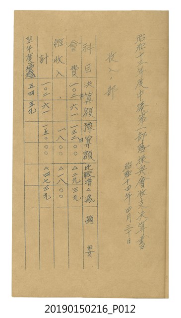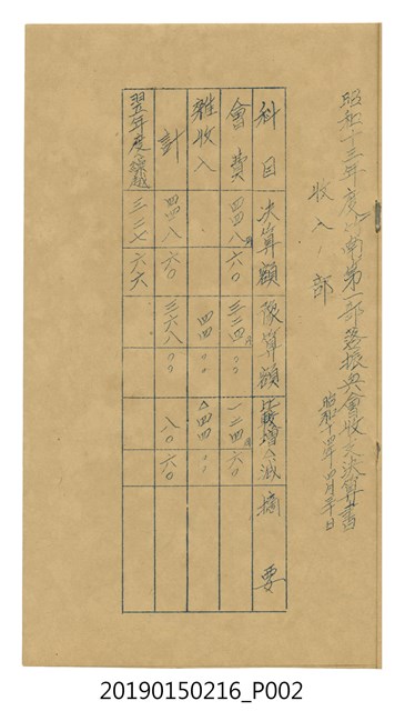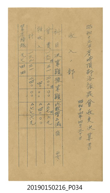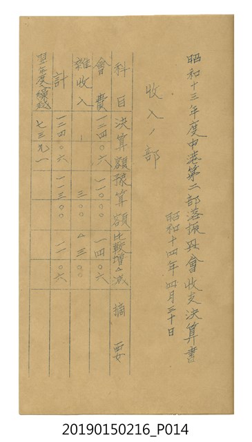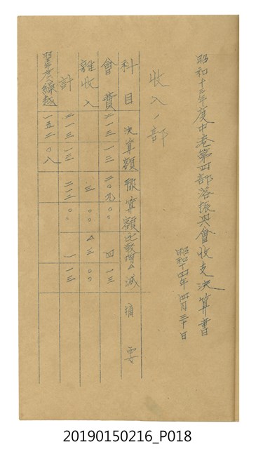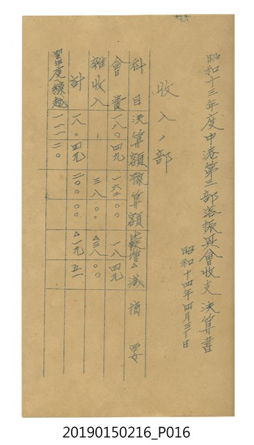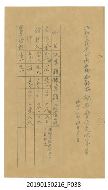 2019.015.0216 竹南庄昭和13年部落振興會決算書