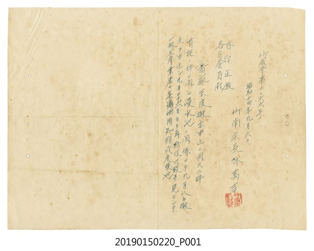 2019.015.0220 昭和14年9月6日竹南庄長林萬吉給各保正與各區委員公文