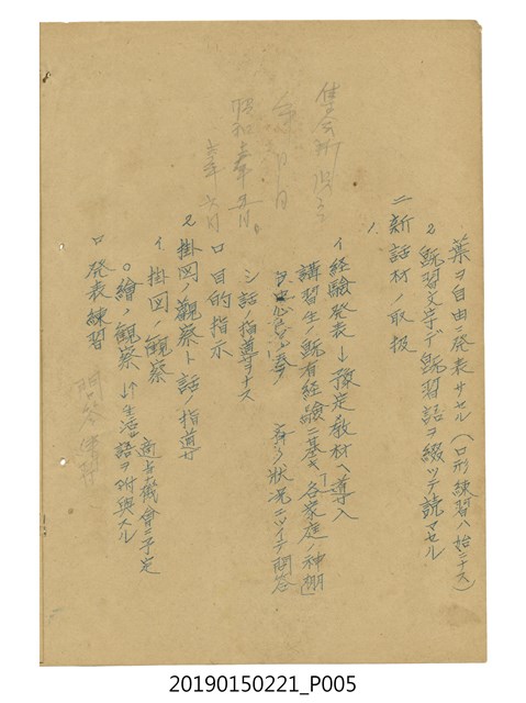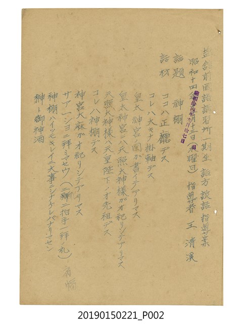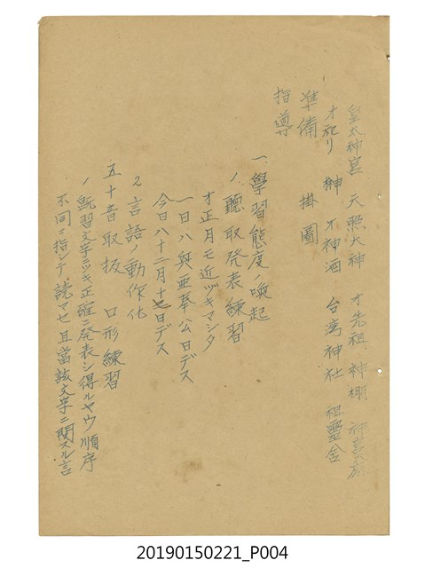 2019.015.0221 塩館前國語講習所一期生話方談話指導案