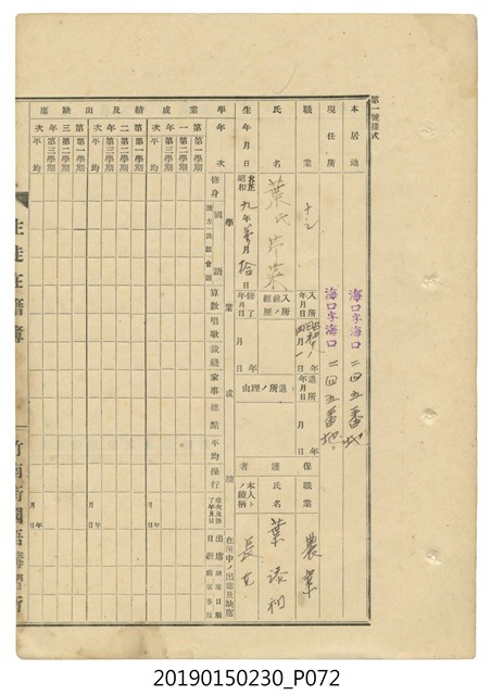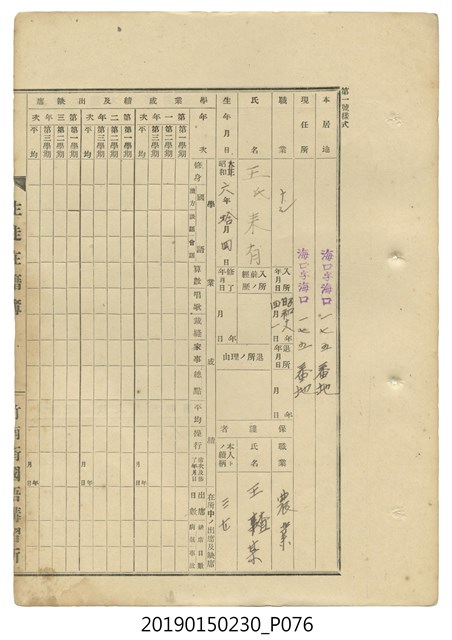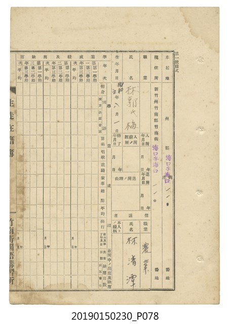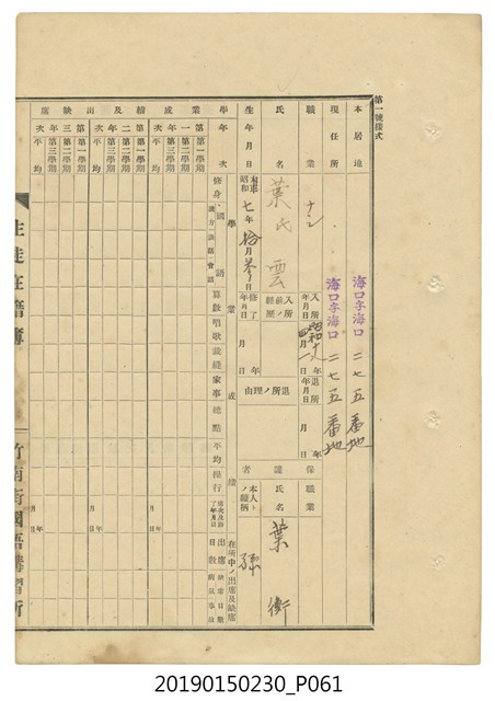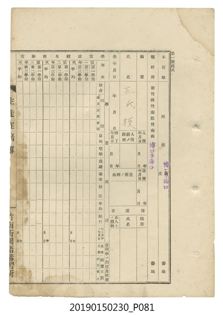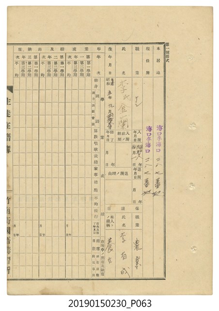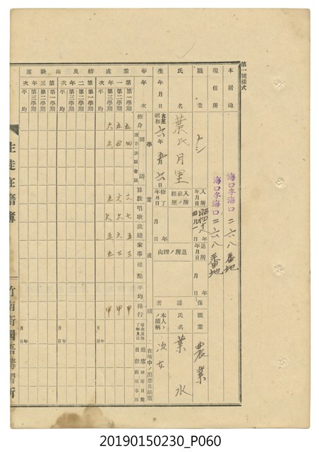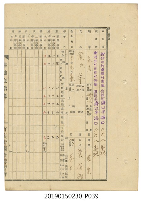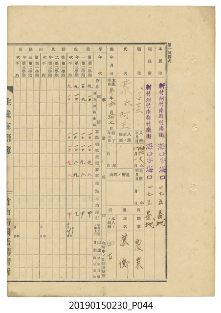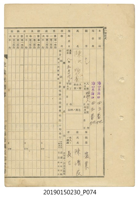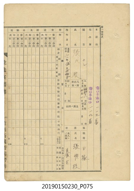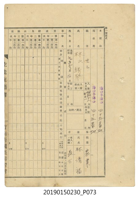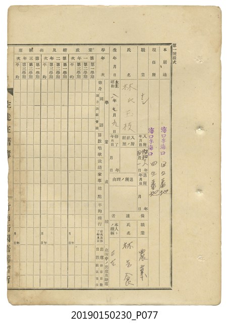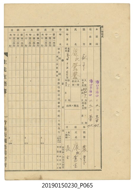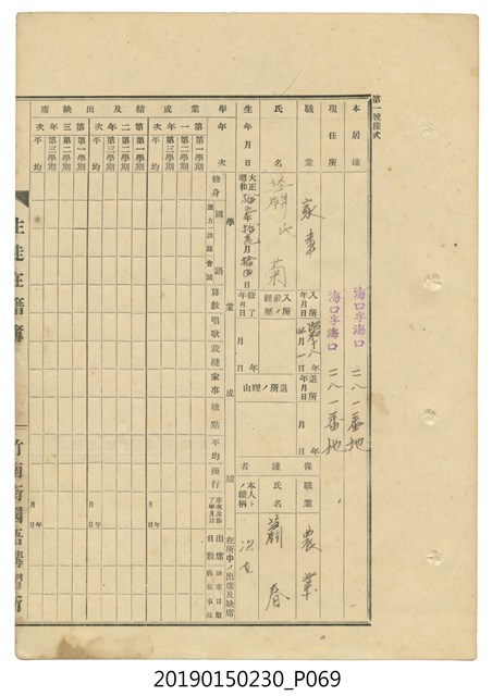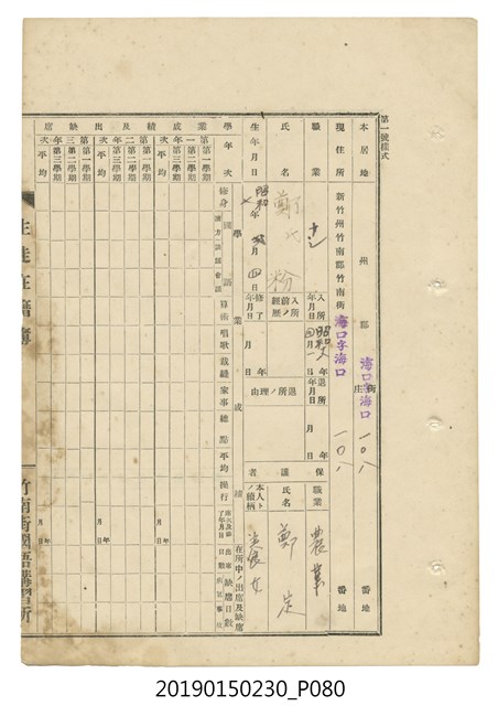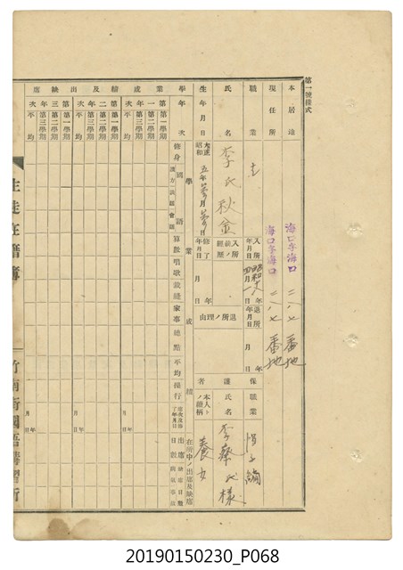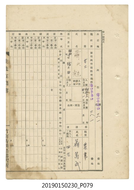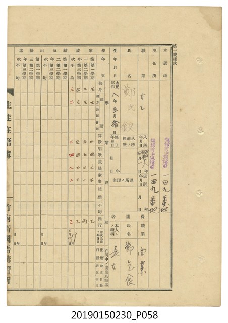 2019.015.0230 塩館前皇民練成所昭和18年度在籍簿