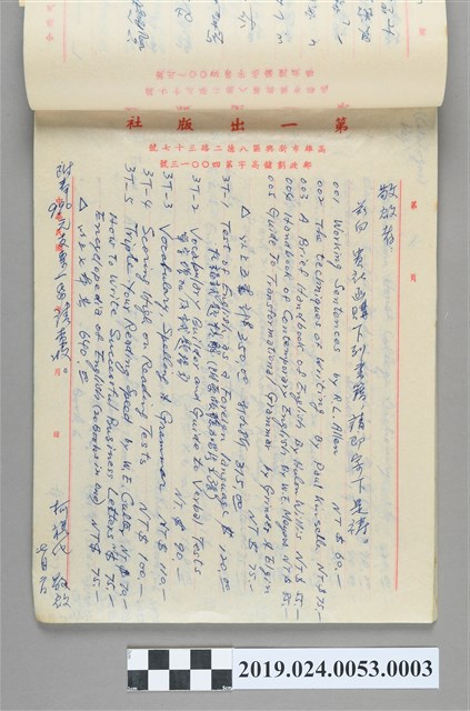 2019.024.0053.0003 1976年7月2日柯旗化向某出版社購書之信件
