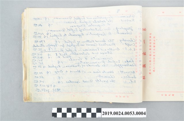 2.第一出版社使用的信箋,柯旗化在1976年第二次出獄後在第一出版社的經營上開始使用信箋簿,主要是將寄出去的信件內容,透過複寫紙在信箋簿上留存,並持續這個習慣一直到1995年,與其他遭受過白色恐怖的受害者一樣,言行都會格外謹慎,何況是還處於戒嚴時期的信件,深恐又被莫名逮捕入獄,此類信箋簿本捐贈案收藏非常完整,包括從1976年至1995年間的信箋簿,而大部分的信箋內容主要還是以出版社業務(估價、訂購書籍回函等等)為主,頁中不時夾帶郵政匯票收據。