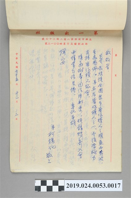 2019.024.0053.0017 1976年11月2日柯旗化寄給著作人權協會之信件