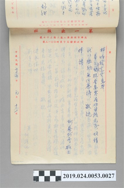 2019.024.0053.0027 1977年1月11日柯旗化以柯蔡阿李名義寄給林時發之信件