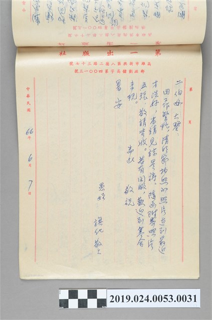 2019.024.0053.0031 1977年6月7日柯旗化寄給二伯母之信件