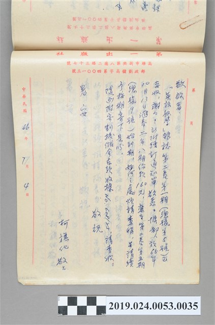 2019.024.0053.0035 1977年7月4日柯旗化《英語教學》雜誌訂購之信件