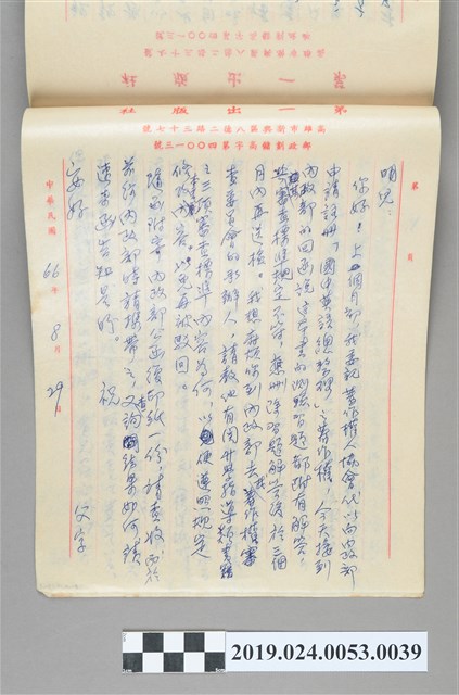 2019.024.0053.0039 1977年8月29日柯旗化寄給長子柯志明之信件
