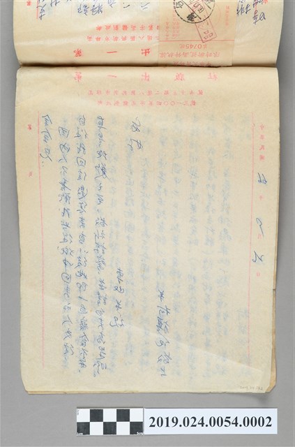 2.第一出版社使用的信箋,柯旗化在1976年第二次出獄後在第一出版社的經營上開始使用信箋簿,主要是將寄出去的信件內容,透過複寫紙在信箋簿上留存,並持續這個習慣一直到1995年,與其他遭受過白色恐怖的受害者一樣,言行都會格外謹慎,何況是還處於戒嚴時期的信件,深恐又被莫名逮捕入獄,此類信箋簿本捐贈案收藏非常完整,包括從1976年至1995年間的信箋簿,而大部分的信箋內容主要還是以出版社業務(估價、訂購書籍回函等等)為主,頁中不時夾帶郵政匯票收據。