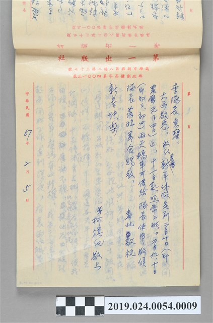 2019.024.0054.0009 1978年2月5日柯旗化寄給李隊長之信件