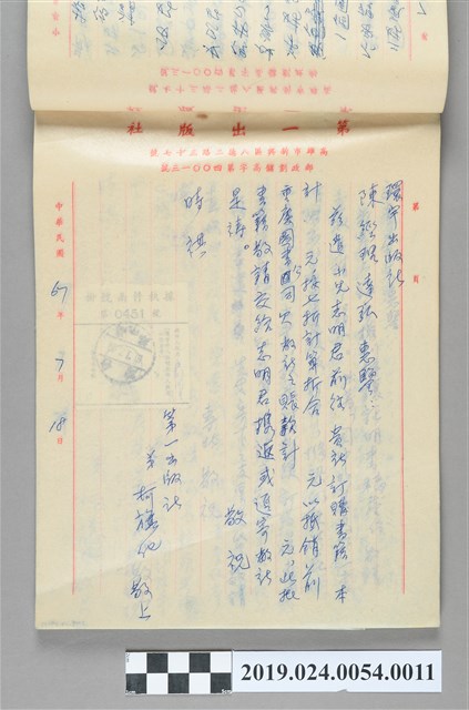 2019.024.0054.0011 1978年7月18日柯旗化寄給環宇出版社之信件