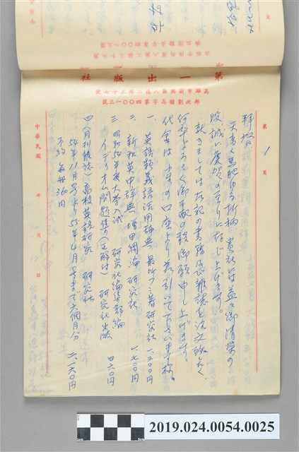 2019.024.0054.0025 1979年10月12日柯旗化向日本貿易株式會社購書之信件
