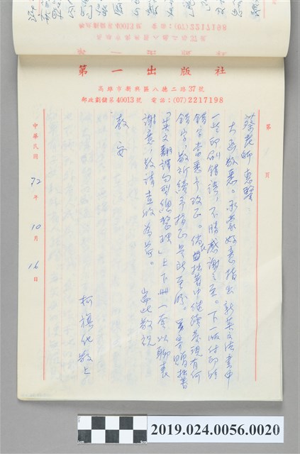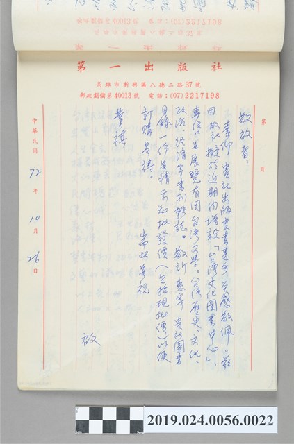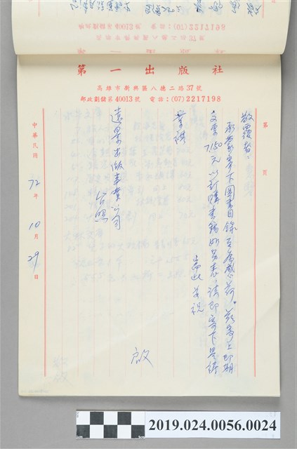 2019.024.0056.0022 1983年10月26日柯旗化向出版社購書之信件