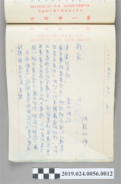 2.第一出版社使用的信箋,柯旗化在1976年第二次出獄後在第一出版社的經營上開始使用信箋簿,主要是將寄出去的信件內容,透過複寫紙在信箋簿上留存,並持續這個習慣一直到1995年,與其他遭受過白色恐怖的受害者一樣,言行都會格外謹慎,何況是還處於戒嚴時期的信件,深恐又被莫名逮捕入獄,此類信箋簿本捐贈案收藏非常完整,包括從1976年至1995年間的信箋簿,而大部分的信箋內容主要還是以出版社業務(估價、訂購書籍回函等等)為主,頁中不時夾帶郵政匯票收據。