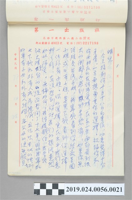 2019.024.0056.0021 1983年10月25日柯旗化寄給長子柯志明之信件