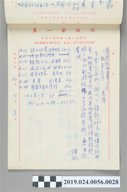 2019.024.0056.0028 1983年11月3日柯旗化向遠景出版社購書之信件