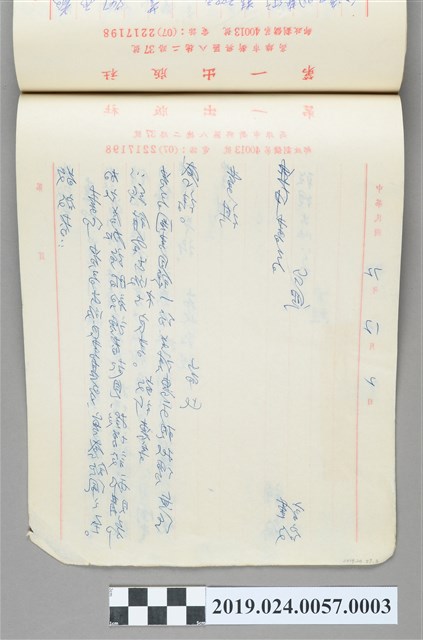 2.第一出版社使用的信箋,柯旗化在1976年第二次出獄後在第一出版社的經營上開始使用信箋簿,主要是將寄出去的信件內容,透過複寫紙在信箋簿上留存,並持續這個習慣一直到1995年,與其他遭受過白色恐怖的受害者一樣,言行都會格外謹慎,何況是還處於戒嚴時期的信件,深恐又被莫名逮捕入獄,此類信箋簿本捐贈案收藏非常完整,包括從1976年至1995年間的信箋簿,而大部分的信箋內容主要還是以出版社業務(估價、訂購書籍回函等等)為主,頁中不時夾帶郵政匯票收據。