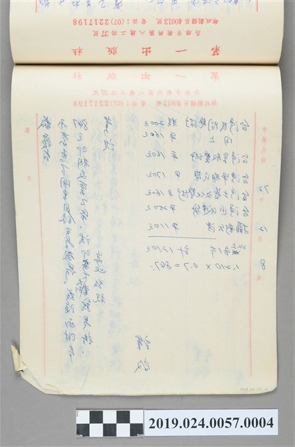 2.第一出版社使用的信箋,柯旗化在1976年第二次出獄後在第一出版社的經營上開始使用信箋簿,主要是將寄出去的信件內容,透過複寫紙在信箋簿上留存,並持續這個習慣一直到1995年,與其他遭受過白色恐怖的受害者一樣,言行都會格外謹慎,何況是還處於戒嚴時期的信件,深恐又被莫名逮捕入獄,此類信箋簿本捐贈案收藏非常完整,包括從1976年至1995年間的信箋簿,而大部分的信箋內容主要還是以出版社業務(估價、訂購書籍回函等等)為主,頁中不時夾帶郵政匯票收據。
