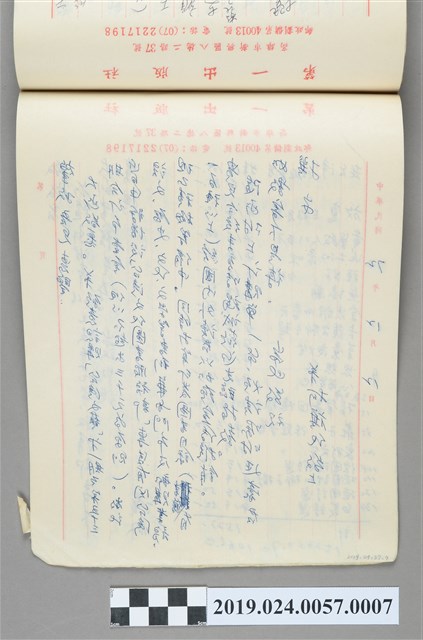 2.第一出版社使用的信箋,柯旗化在1976年第二次出獄後在第一出版社的經營上開始使用信箋簿,主要是將寄出去的信件內容,透過複寫紙在信箋簿上留存,並持續這個習慣一直到1995年,與其他遭受過白色恐怖的受害者一樣,言行都會格外謹慎,何況是還處於戒嚴時期的信件,深恐又被莫名逮捕入獄,此類信箋簿本捐贈案收藏非常完整,包括從1976年至1995年間的信箋簿,而大部分的信箋內容主要還是以出版社業務(估價、訂購書籍回函等等)為主,頁中不時夾帶郵政匯票收據。