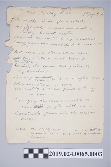 2019.024.0065.0003 柯旗化詩作〈濁水溪〉英文手稿