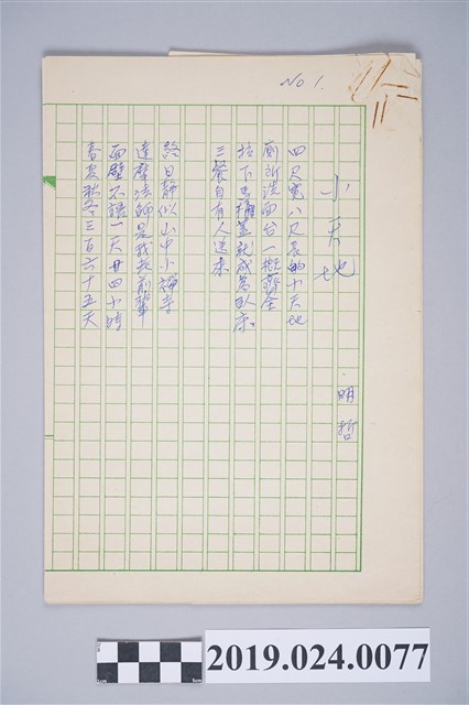 2019.024.0077 柯旗化詩作〈小天地〉手稿
