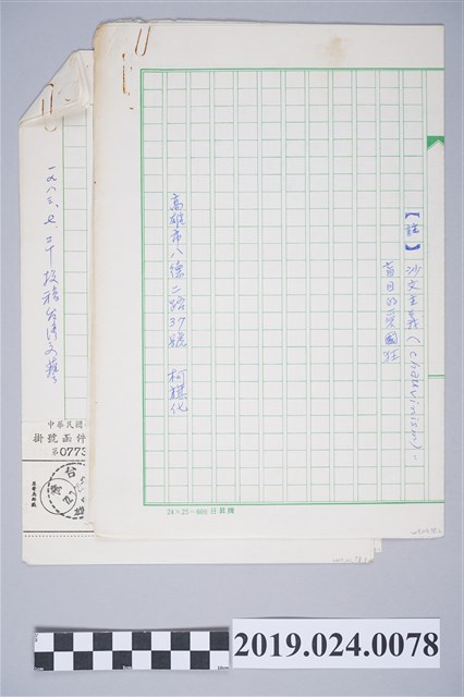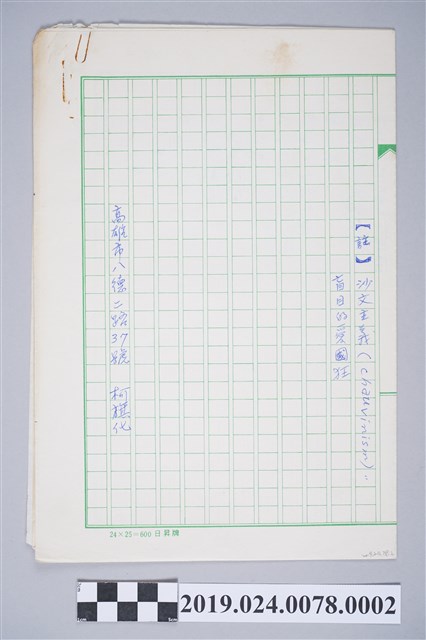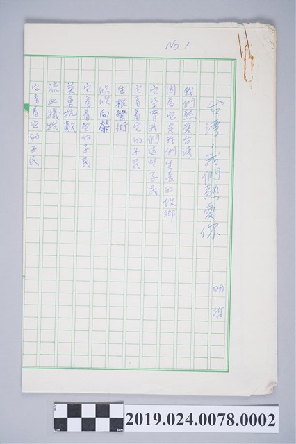2019.024.0078.0002 柯旗化詩作〈台灣,我們熱愛你〉複寫稿