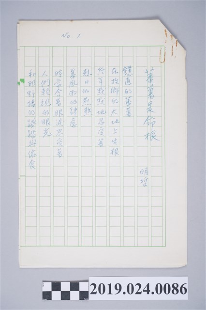 2019.024.0086 柯旗化詩作〈番薯是命根〉複寫稿