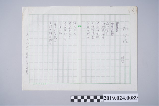 2019.024.0089 柯旗化詩作〈死心眼〉手稿