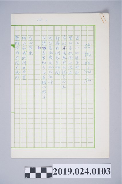 2019.024.0103 柯旗化詩作〈故鄉的泥土〉複寫稿