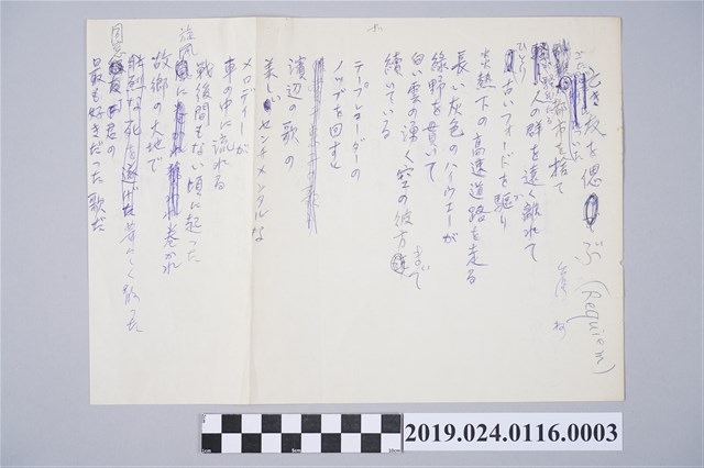 2019.024.0116.0003 柯旗化詩作〈在高速公路上〉日文草稿