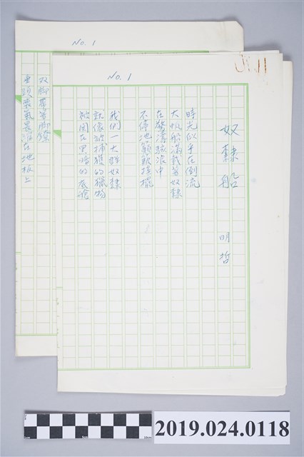 2019.024.0118 柯旗化詩作〈奴隸船〉複寫稿