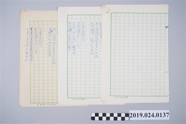 1.中文詩作〈血統〉手稿,署名明哲(柯旗化筆名),文中流露出無奈之情,稿紙上並無標註日期,共2張。2.柯旗化於1982年完成最後一本英文教科書後,便一心轉向投入宣揚台灣意識的文化事業,包括編寫《台灣文化圖書目錄》與創辦《台灣文化》季刊之外,也積極撰寫詩作、社論投稿到台、日等報章雜誌,多數投稿在《台灣文藝》雜誌雙月刊、《笠》詩刊、《民眾日報》天聲人語專欄等等,此時期的柯旗化企圖跳脫白色恐怖冤獄的陰影,反而更無畏、積極地為自己的政治理念發聲,另外,柯旗化從創作詩開始便有將其作品轉譯成台語、日語、英語的習慣,於文章的寫作也是如此,因此可以發現因為語言版本的關係也有一稿多投得情況。本捐贈案文物囊括柯旗化生前最完整的親筆手稿(複寫稿),十分珍貴,其中又以未刊登或未註明投稿的手稿為最多,共收藏有146件(包含複寫稿)、其次是柯旗化投稿於《台灣文藝》季刊的作品42件,以及《民眾日報》天聲人語專欄刊登的社論32件,其餘數件刊登於《笠》詩刊、《台灣詩季刊》、《文學界》等等。
