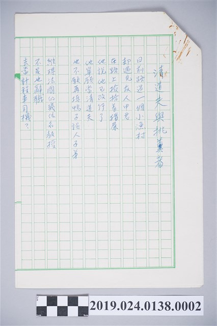 2019.024.0138.0002 柯旗化詩作〈清道夫與挑糞者〉複寫稿